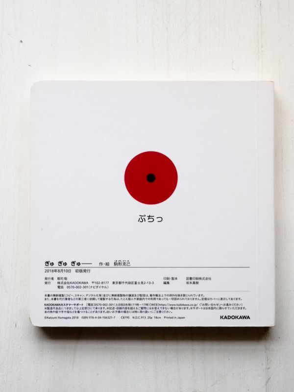 駒形克己「ぎゅぎゅぎゅー」 [06831] 駒形克己「ぎゅぎゅぎゅー」 [06831] 販売価格はお問い合わせください。 Tweet お問い合わせ 著者 : 駒形克己(作) 出版社 : 角川書店発行年 : 12018/8/10 初版本の寸法 : 17.4 x 17.4 x 1.2 cm 送料区分 : B本の状態 : A■表紙の薄いスレあり。 詳細画像 こちらもおすすめです 駒形克己「THE ANIMALS どうぶつ」 [06829] 駒形克己「FRIENDS IN NATURE しぜんはともだち」 [06830]